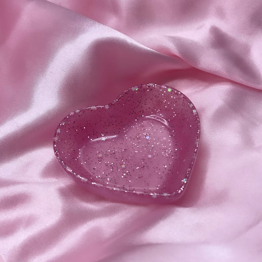 Resin Baby Pink Sparkle heart Dish Jewellery Ring Holder Pot