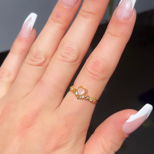Gold Diamanté flower Princess Baby Pink adjustable Ring