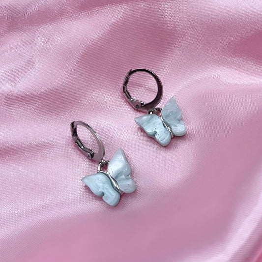 Stainless steel cz winged heart Huggie Hoop Earrings