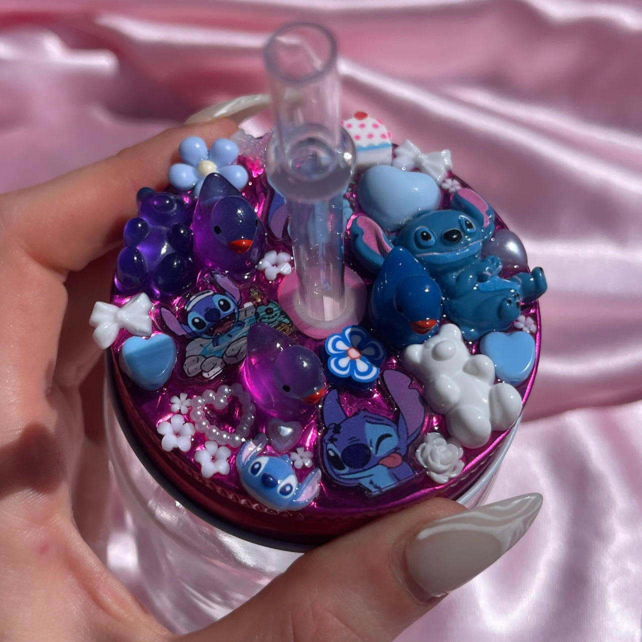 Junk Glass Drinking Cup with straw. Lid screws off so you can wash cup separately. Do not put the lid in the dishwasher.